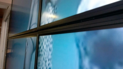 O video wall é composto pela sobreposição de várias telas que podem se transformar em um grande painel. Ele foi desenvolvido para atender às exigências do mercado profissional para publicidade em shopping centers, centrais de controle, aeroportos, shows, feiras, eventos, etc. No começo, os video walls eram montados com cubos que possuíam retroprojetores individuais equipados com lâmpadas halógenas e um sistema rotativo de cores (também chamado de roda-de-cores). Devido ao alto custo de manutenção e a problemas na intensidade de brilho e no balanço de branco, esse formato de video wall foi caindo em desuso. Os monitores de plasma também foram utilizados em larga escala, principalmente porque sua tecnologia pôde ser aplicada em painéis com bordas mínimas (como também era o caso dos cubos), produzindo assim um ótimo efeito visual.